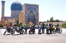 Today our motorcycles rest, and we are immersed in the ancient city of Samarkand. Samarkand witnessed the time of Alexander Makedonsky, occupation of great Chingyz khan and Timur the Lame, possessing a mix of different cultures. Magical city! In 2001 year Samarkand was included in the World Cultural Heritage List of UNESCO. Our city tour will be divided in two parts and we will need no bikes for that. Before the lunch time you will visit: Gur-Amir mausoleum and Registan square and Bib-Khanum mosque. Real pilaf for lunch – national Uzbek meal, the crown jewel of Uzbekistan kitchen. The hottest time of the day we are going to spend in a hotel and then you can continue excursions visiting Samarkand bazaar. Overnight hotel.